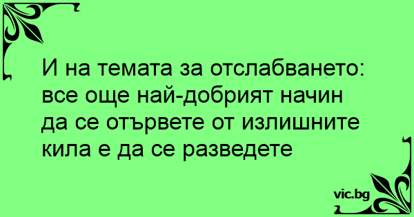 И на темата за отслабването: все още най-добрият начин да се отървете от излишните кила е да се разведете