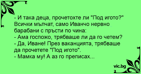 - Да, Иване! През ваканцията, трябваше да прочетете "Под игото".