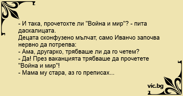 - Да! През ваканцията трябваше да прочетете "Война и мир"!