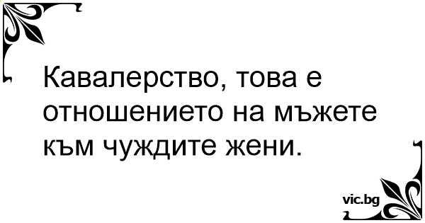 Кавалерство, това е отношението на мъжете към чуждите жени.