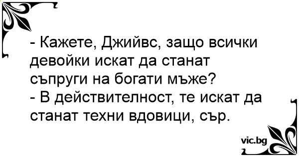 - Кажете, Джийвс, защо всички девойки искат да станат съпруги на богати мъже?