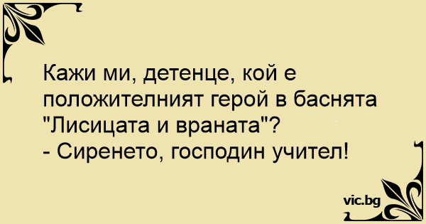 • Вицове от Facebook от нашата страница https://www.facebook.com/www.vic.bg