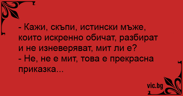 - Кажи, скъпи, истински мъже, които искренно обичат, разбират и не изневеряват, мит ли е?
