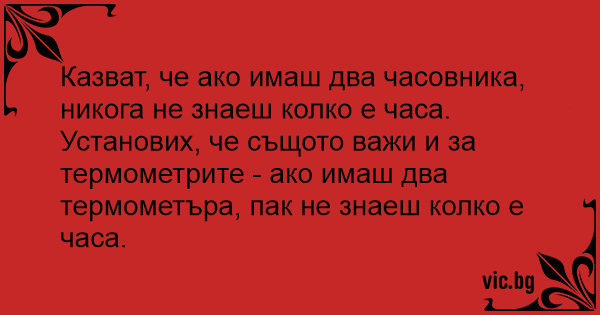 Установих, че същото важи и за термометрите - ако имаш два термометъра, пак не знаеш колко е часа.
