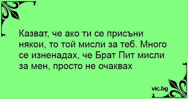 Казват, че ако ти се присъни някои, то той мисли за теб. Много се изненадах, че Брат Пит мисли за мен, просто не очаквах