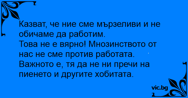 Това не е вярно! Мнозинството от нас не сме против работата. Важното е, тя да не ни пречи на пиенето и другите хобитата.