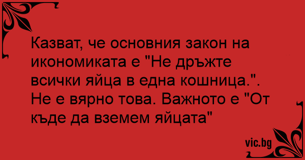 Казват, че основния закон на икономиката е "Не дръжте всички яйца в една кошница.".
