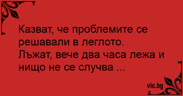 Казват, че проблемите се решавали в леглото.