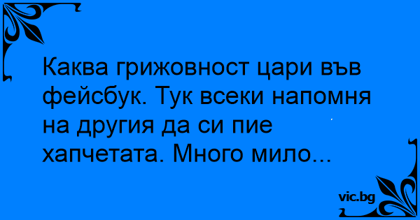 Каква грижовност цари във фейсбук. Тук всеки напомня на другия да си пие хапчетата. Много мило...