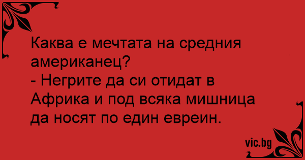 - Негрите да си отидат в Африка и под всяка мишница да носят по един евреин.