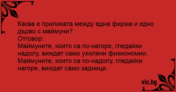 Каква е приликата между една фирма и едно дърво с маймуни?