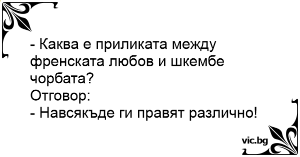- Каква е приликата между френската любов и шкембе чорбата?