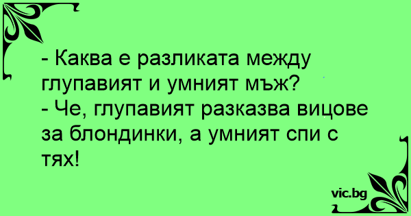 - Че, глупавият разказва вицове за блондинки, а умният спи с тях!