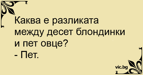 Каква е разликата между десет блондинки и пет овце?