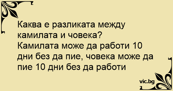 Камилата може да работи 10 дни без да пие, човека може да пие 10 дни без да работи