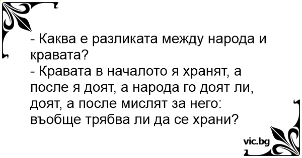 • Вицове от Facebook от нашата страница https://www.facebook.com/www.vic.bg