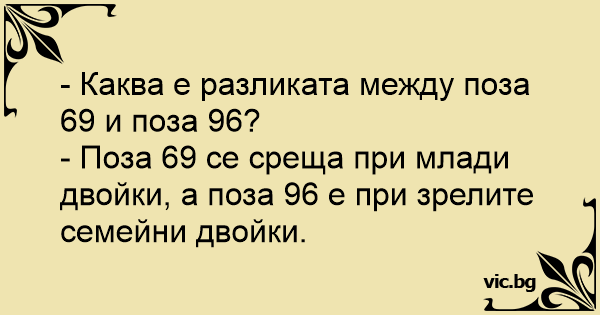 - Поза 69 се среща при млади двойки, а поза 96 е при зрелите семейни двойки.