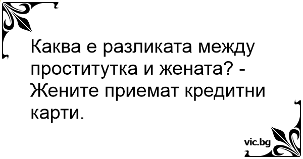Каква е разликата между пpoctиtуtka и жената? - Жените приемат кредитни карти.