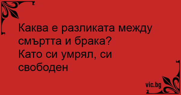 – Vad är det för skillnad på döden och ett äktenskap? – Är du död är du fri.