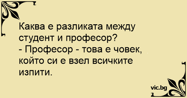 • Вицове от Facebook от нашата страница https://www.facebook.com/www.vic.bg