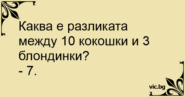 Каква е разликата между 10 кокошки и 3 блондинки?