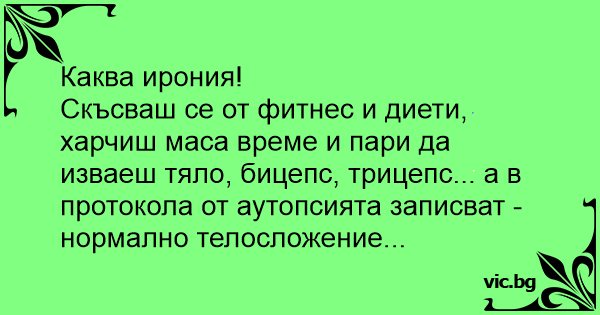 Скъсваш се от фитнес и диети, харчиш маса време и пари да изваеш тяло, бицепс, трицепс... а в протоколa от аутопсията записват - нормално телосложение...