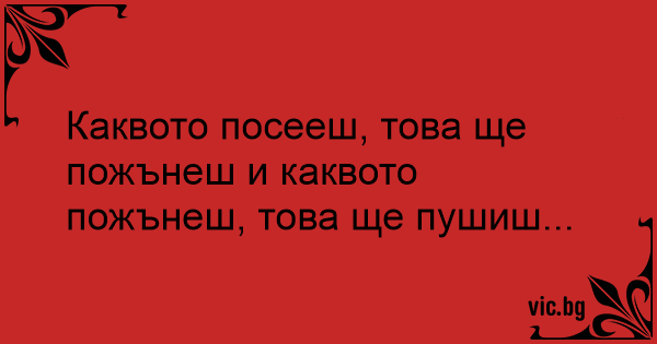 Каквото посееш, това ще пожънеш и каквото пожънеш, това ще пушиш...