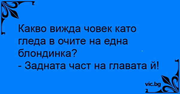 - Vad ser man när man tittar djupt i en blondins ögon? - Baksidan på hennes huvud.