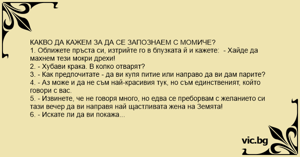 КАКВО ДА КАЖЕМ ЗА ДА СЕ ЗАПОЗНАЕМ С МОМИЧЕ?