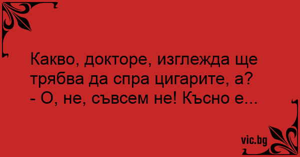 Какво, докторе, изглежда ще трябва да спра цигарите, а?