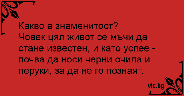 Човек цял живот се мъчи да стане известен, и като успее - почва да носи черни очила и перуки, за да не го познаят.