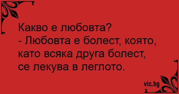 - Любовта е болест, която, като всяка друга болест, се лекува в леглото.