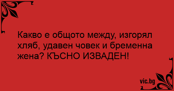 Какво е общото между, изгорял хляб, удавен човек и бременна жена? КЪСНО ИЗВАДЕН!