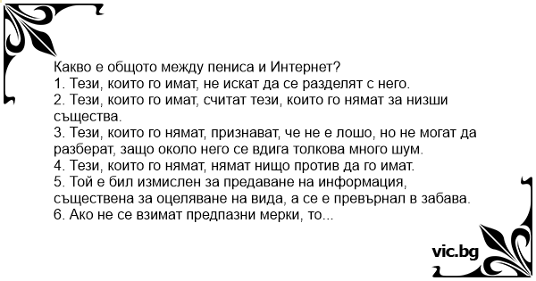 • Вицове от Facebook от нашата страница https://www.facebook.com/www.vic.bg