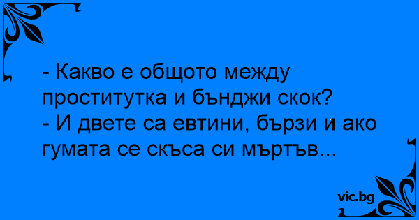 (asta-i cu asemanare de fapt) Q: Care-i asemanarea dintre o prostituata si un elastic de bungee-jumping ? A: Amandoua costa 75$, iar daca s-a rupt cauciucul esti halit.