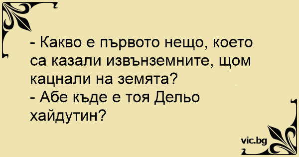 - Какво е първото нещо, което са казали извънземните, щом кацнали на земята?