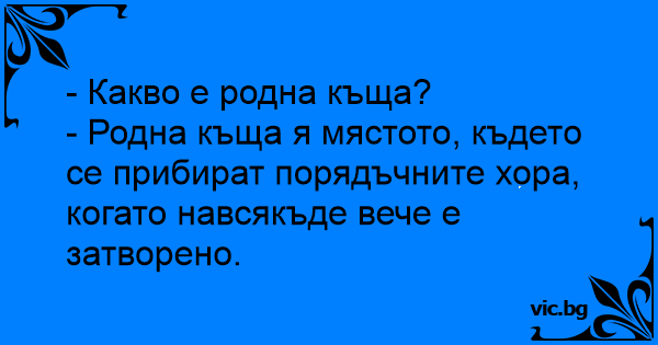 - Родна къща я мястото, където се прибират порядъчните хора, когато навсякъде вече е затворено.