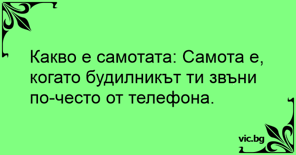 Какво е самотата: Самота е, когато будилникът ти звъни по-често от телефона.