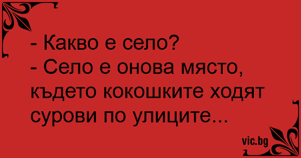 - Село е онова място, където кокошките ходят сурови по улиците...