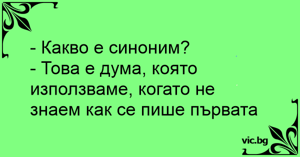 Vad är en synonym? Ett ord man använder när man inte kan stava till det man först hade tänkt använda!
