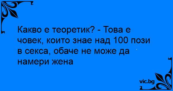 Какво е теоретик? - Това е човек, които знае над 100 пози в cekca, обаче не може да намери жена