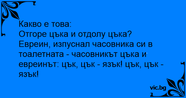 Евреин, изпуснал часовника си в тоалетната - часовникът цъка и евреинът: цък, цък - язък! цък, цък - язък!