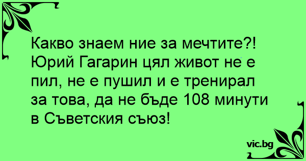Юрий Гагарин цял живот не е пил, не е пушил и е тренирал за това, да не бъде 108 минути в Съветския съюз!