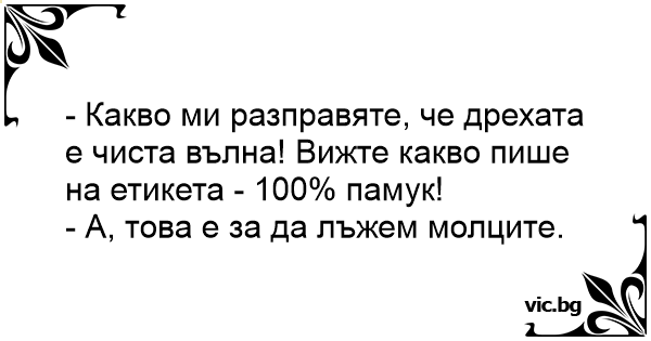 - Какво ми разправяте, че дрехата е чиста вълна! Вижте какво пише на етикета - 100% памук!
