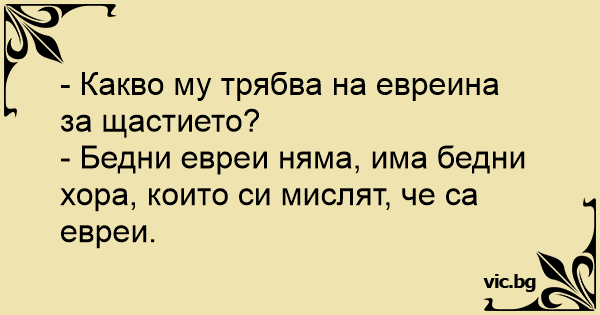 - Какво му трябва на евреина за щастието?