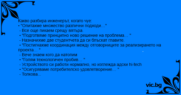 Какво разбира инженерът, когато чуе: