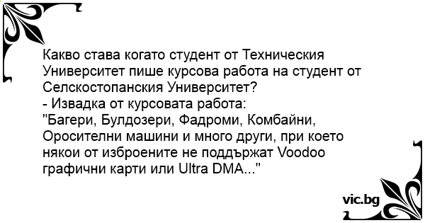 Какво става когато студент от Техническия Университет пише курсова работа на студент от Селскостопанския Университет?