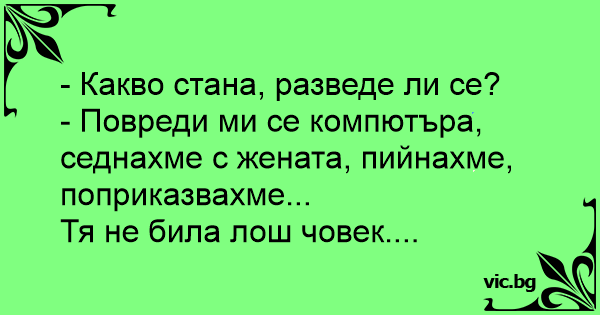 • Вицове от Facebook от нашата страница https://www.facebook.com/www.vic.bg