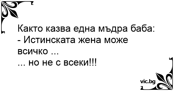 Както казва една мъдра баба: