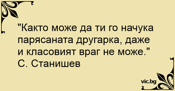 "Както може да ти го нaчуka парясаната другарка, даже и класовият враг не може."